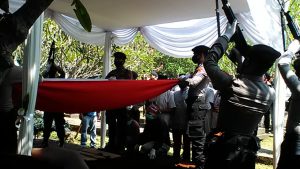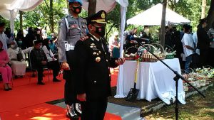 M. Pict., M.ISS pimpin rangkaian pemakaman almarhun yang dilaksanakan dengan khidmat secara kedinasan di Taman Makam Pahlawan Pondok Rajeg Cibinong.