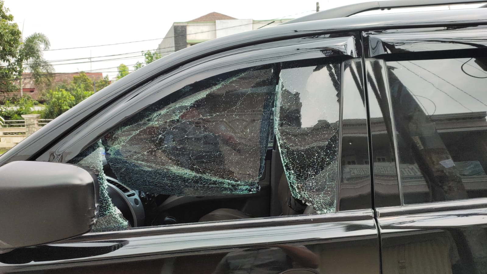 TANGERANG, INDONESIA PARLEMEN – Mobil Mitsubishi Pajero Sport nomor polisi B 86 NUR milik anggota LSM Geram Banten Indonesia jadi korban pecah kaca, saat sedang terparkir di Jl Raya Serang KM 17,5, Kampung Bojong, Desa Bojong, Kecamatan Cikupa, Kabupaten Tangerang, Banten. Jumat, (13/8/2021).